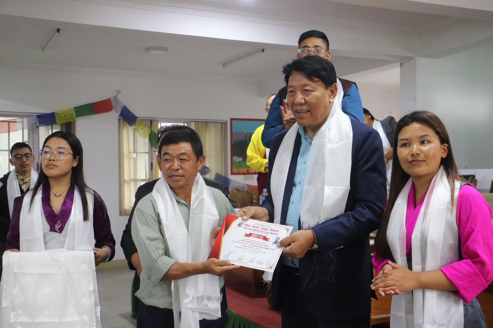 नारायणटारस्थित नेपाल शेर्पा संघको भवनमा आयोजित शेर्पा तथा नेपाली भाषा उद्घोषण तालिम समापन समारोह सोमबार सम्पन्न भएको हो ।